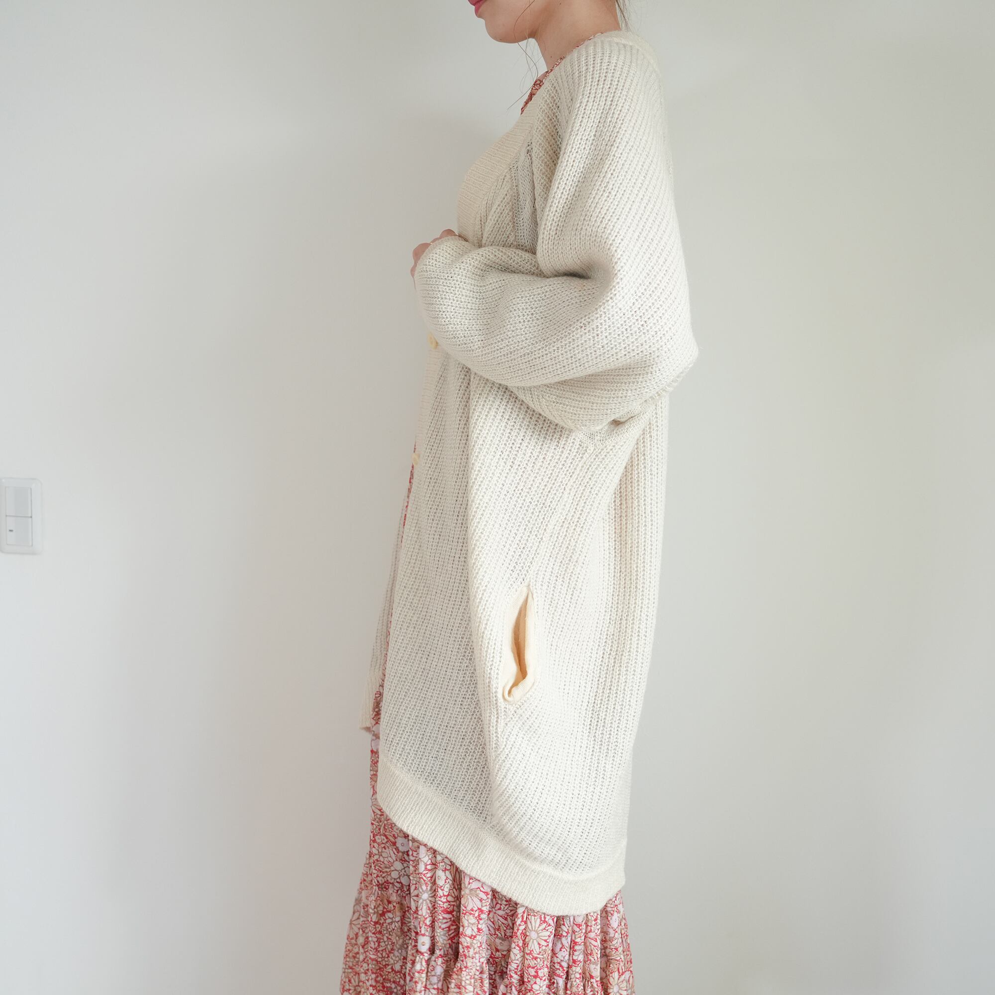 80s mohair long knit cardigan (england)
