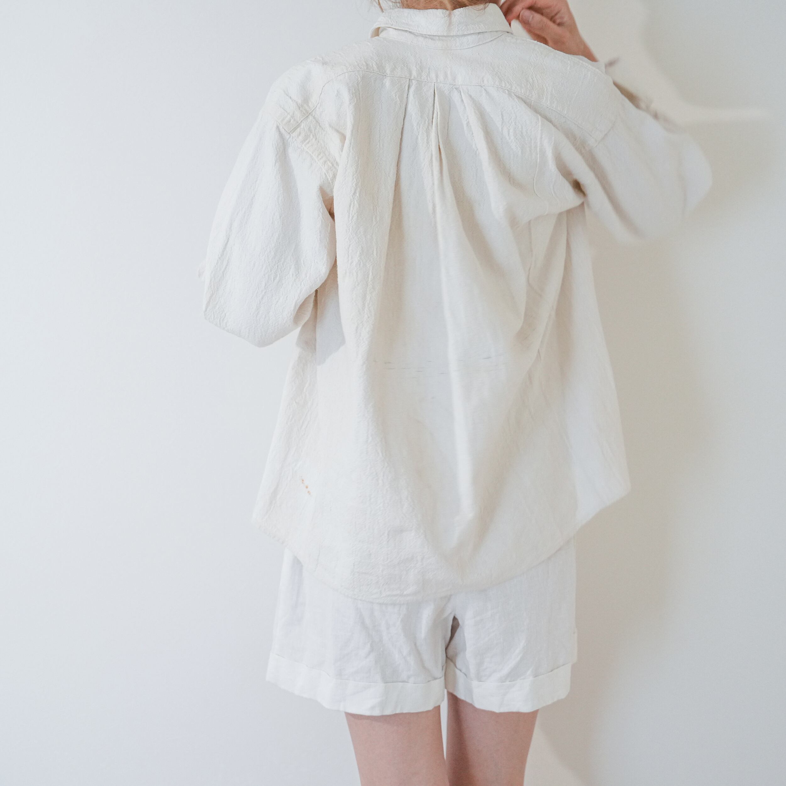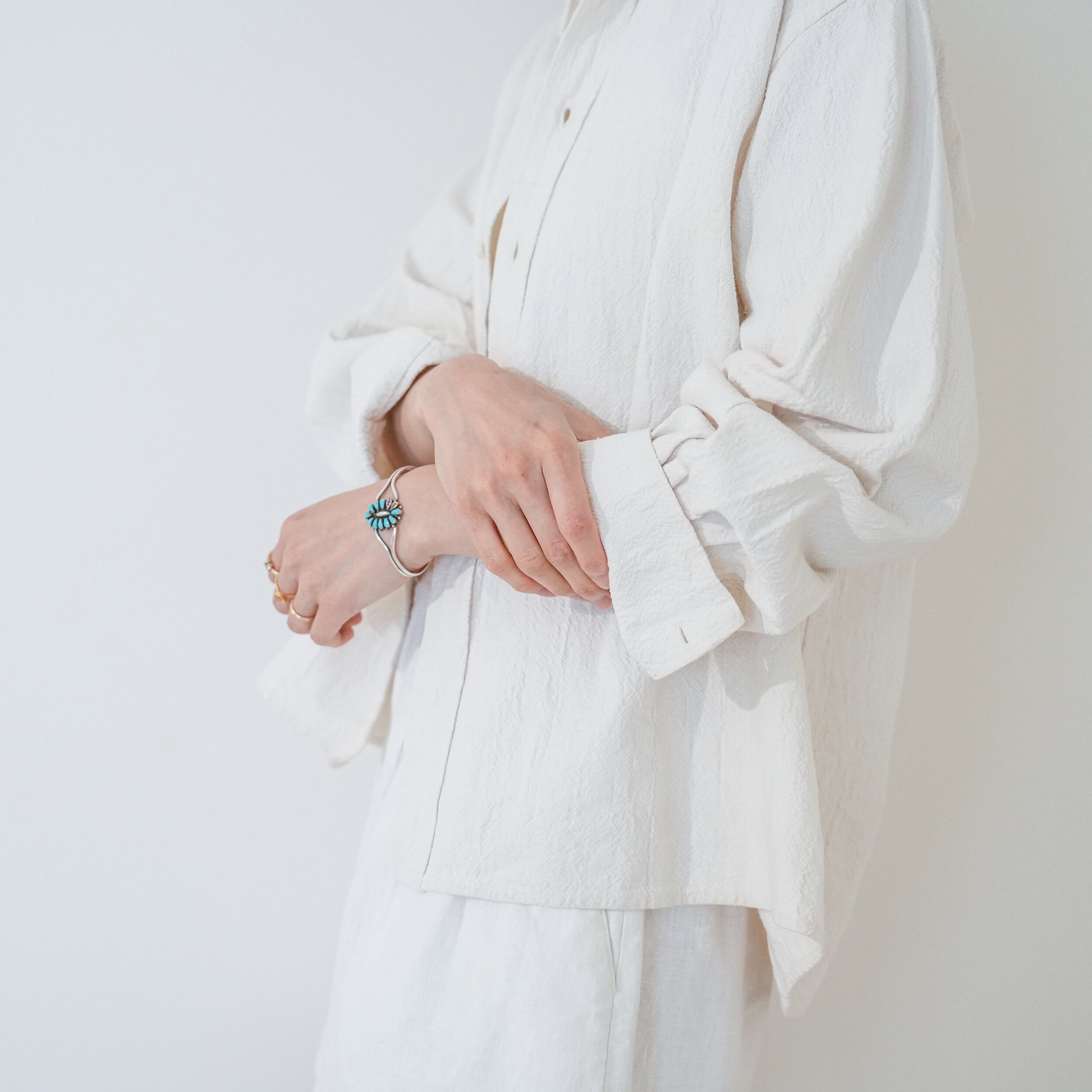 生地にコシがあり、上質で一枚でサマになるシャツです。羽織でも一枚でも。